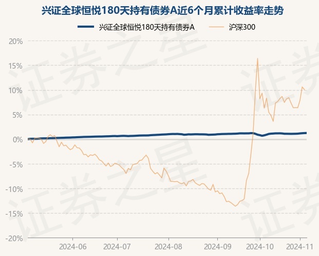 证券之星消息,11月6日,兴证全球恒悦180天持有债券A最新单位净值为1.1197元,累计净值为1.1197元,较前一交易日上涨0.02%。历史数据显示该基金近1个月上涨0.34%,近3个月上涨0.21%,近6个月上涨1.25%,近1年上涨4.15%。该基金近6个月的累计收益率走势如下图: