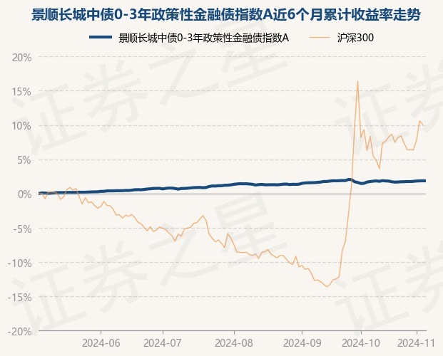 证券之星消息,11月6日,景顺长城中债0-3年政策性金融债指数A最新单位净值为1.0336元,累计净值为1.053元,较前一交易日上涨0.0%。历史数据显示该基金近1个月上涨0.23%,近3个月上涨0.43%,近6个月上涨1.85%,近1年上涨4.52%。该基金近6个月的累计收益率走势如下图: