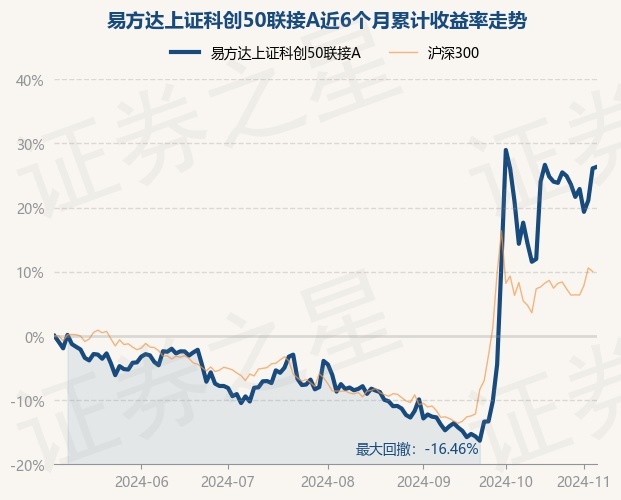 证券之星消息,11月6日,易方达上证科创50联接A最新单位净值为0.7795元,累计净值为0.7795元,较前一交易日上涨0.19%。历史数据显示该基金近1个月上涨13.27%,近3个月上涨36.61%,近6个月上涨26.36%,近1年上涨11.17%。该基金近6个月的累计收益率走势如下图: