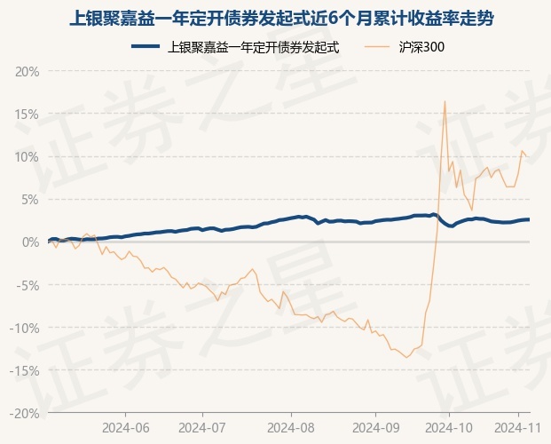 证券之星消息,11月6日,上银聚嘉益一年定开债券发起式最新单位净值为1.0289元,累计净值为1.0667元,较前一交易日上涨0.01%。历史数据显示该基金近1个月上涨0.46%,近3个月下跌0.25%,近6个月上涨2.54%,近1年上涨4.98%。该基金近6个月的累计收益率走势如下图:
