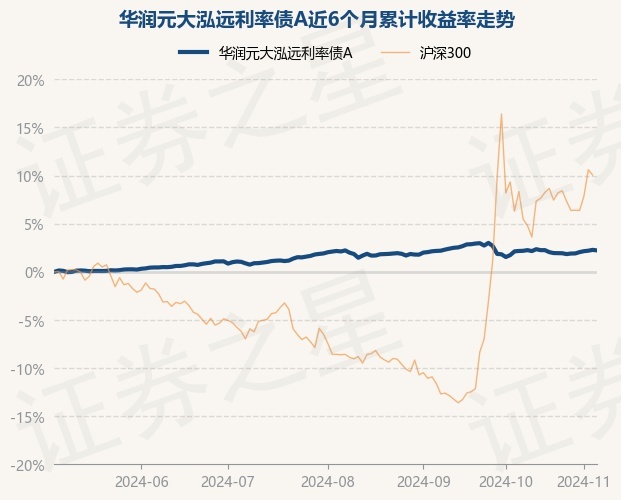 证券之星消息,11月6日,华润元大泓远利率债A最新单位净值为1.046元,累计净值为1.046元,较前一交易日下跌0.06%。历史数据显示该基金近1个月上涨0.39%,近3个月上涨0.11%,近6个月上涨2.22%,近1年上涨4.55%。该基金近6个月的累计收益率走势如下图: