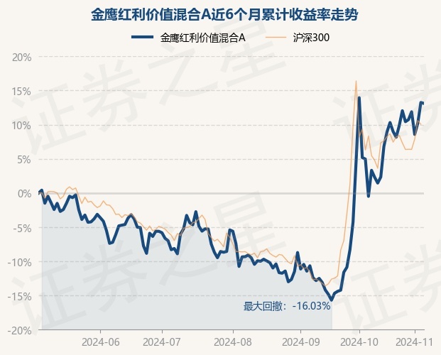 证券之星消息,11月6日,金鹰红利价值混合A最新单位净值为1.9881元,累计净值为3.8006元,较前一交易日下跌0.12%。历史数据显示该基金近1个月上涨8.0%,近3个月上涨24.78%,近6个月上涨13.11%,近1年上涨8.72%。该基金近6个月的累计收益率走势如下图: