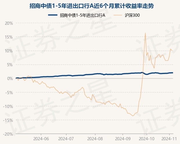 证券之星消息,11月6日,招商中债1-5年进出口行A最新单位净值为1.0402元,累计净值为1.1602元,较前一交易日上涨0.0%。历史数据显示该基金近1个月上涨0.48%,近3个月上涨0.35%,近6个月上涨1.98%,近1年上涨4.34%。该基金近6个月的累计收益率走势如下图: