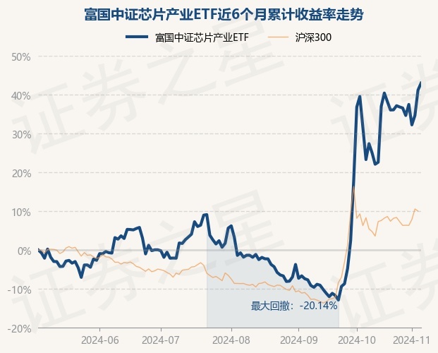 证券之星消息,11月6日,富国中证芯片产业ETF最新单位净值为0.7494元,累计净值为0.7494元,较前一交易日上涨1.28%。历史数据显示该基金近1个月上涨21.16%,近3个月上涨44.03%,近6个月上涨43.02%,近1年上涨15.97%。该基金近6个月的累计收益率走势如下图: