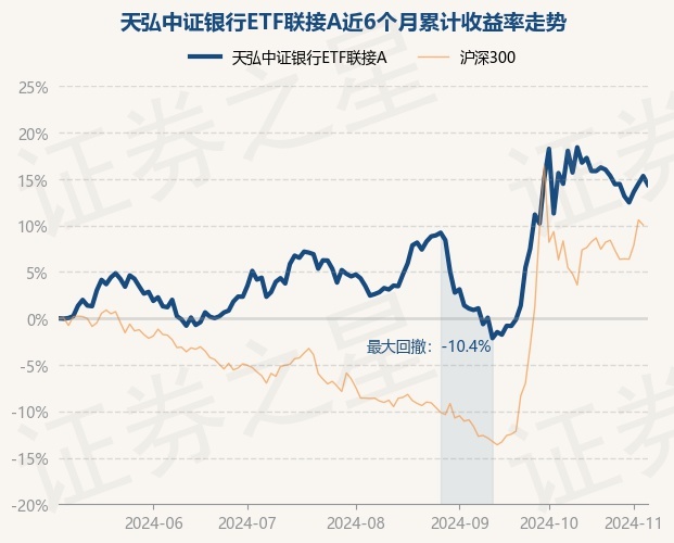 证券之星消息,11月6日,天弘中证银行ETF联接A最新单位净值为1.528元,累计净值为1.528元,较前一交易日下跌0.81%。历史数据显示该基金近1个月下跌0.59%,近3个月上涨11.65%,近6个月上涨14.39%,近1年上涨27.52%。该基金近6个月的累计收益率走势如下图: