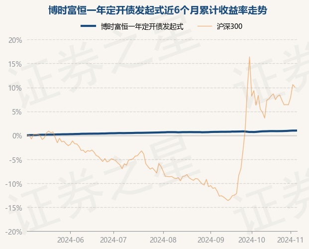 证券之星消息,11月6日,博时富恒一年定开债发起式最新单位净值为1.0382元,累计净值为1.0982元,较前一交易日上涨0.01%。历史数据显示该基金近1个月上涨0.3%,近3个月上涨0.33%,近6个月上涨1.0%,近1年上涨4.38%。该基金近6个月的累计收益率走势如下图: