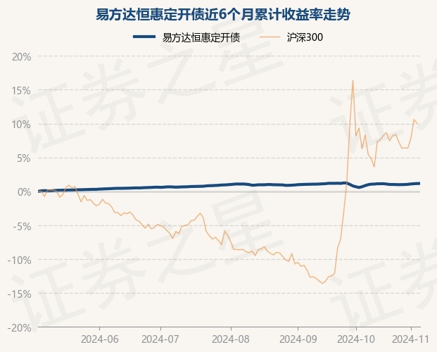 证券之星消息,11月6日,易方达恒惠定开债最新单位净值为1.0686元,累计净值为1.2516元,较前一交易日上涨0.02%。历史数据显示该基金近1个月上涨0.37%,近3个月上涨0.09%,近6个月上涨1.16%,近1年上涨3.07%。该基金近6个月的累计收益率走势如下图: