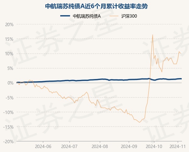证券之星消息,11月6日,中航瑞苏纯债A最新单位净值为1.03元,累计净值为1.04元,较前一交易日下跌0.02%。历史数据显示该基金近1个月上涨0.34%,近3个月上涨0.16%,近6个月上涨1.32%,近1年上涨3.41%。该基金近6个月的累计收益率走势如下图: