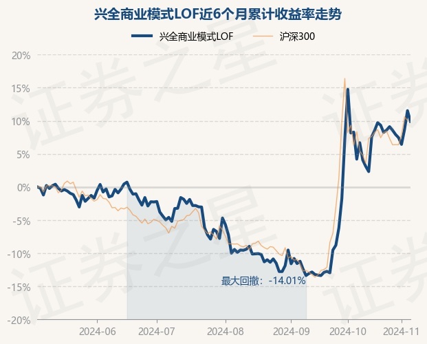 证券之星消息,11月6日,兴全商业模式LOF最新单位净值为3.451元,累计净值为4.311元,较前一交易日下跌1.46%。历史数据显示该基金近1个月上涨2.43%,近3个月上涨21.34%,近6个月上涨9.9%,近1年上涨12.78%。该基金近6个月的累计收益率走势如下图: