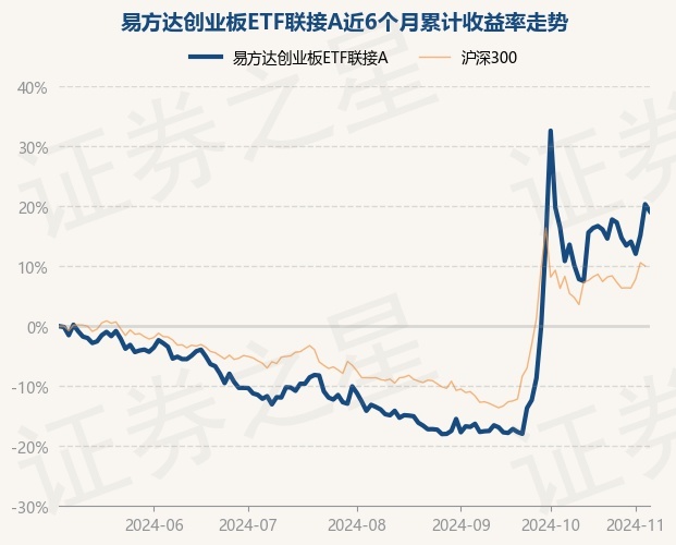 证券之星消息,11月6日,易方达创业板ETF联接A最新单位净值为2.3171元,累计净值为2.3171元,较前一交易日下跌0.99%。历史数据显示该基金近1个月上涨4.15%,近3个月上涨37.14%,近6个月上涨19.16%,近1年上涨11.15%。该基金近6个月的累计收益率走势如下图: