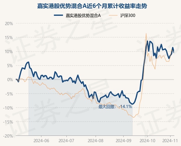 证券之星消息,11月6日,嘉实港股优势混合A最新单位净值为0.8972元,累计净值为0.8972元,较前一交易日下跌1.54%。历史数据显示该基金近1个月下跌1.81%,近3个月上涨19.32%,近6个月上涨9.63%,近1年上涨17.39%。该基金近6个月的累计收益率走势如下图: