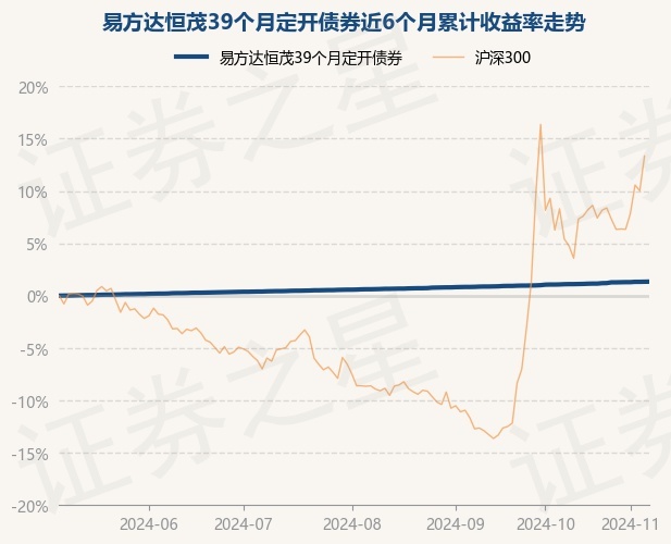 证券之星消息,11月7日,易方达恒茂39个月定开债券最新单位净值为1.0153元,累计净值为1.1333元,较前一交易日上涨0.01%。历史数据显示该基金近1个月上涨0.34%,近3个月上涨0.72%,近6个月上涨1.34%,近1年上涨2.53%。该基金近6个月的累计收益率走势如下图: