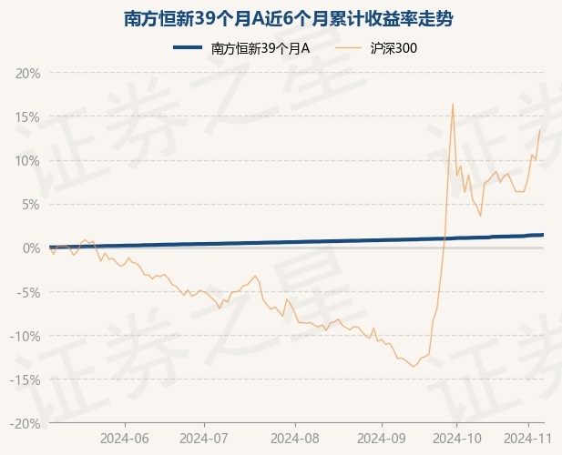 证券之星消息,11月7日,南方恒新39个月A最新单位净值为1.0386元,累计净值为1.1926元,较前一交易日上涨0.05%。历史数据显示该基金近1个月上涨0.42%,近3个月上涨0.79%,近6个月上涨1.44%,近1年上涨2.6%。该基金近6个月的累计收益率走势如下图: