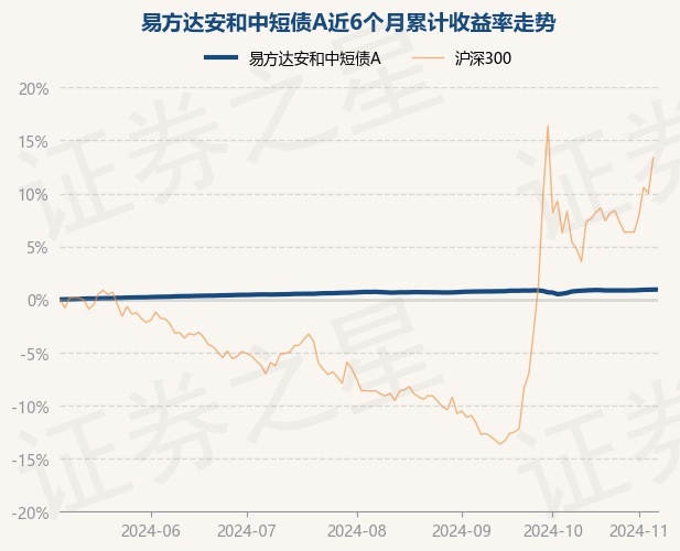 证券之星消息,11月7日,易方达安和中短债A最新单位净值为1.0686元,累计净值为1.1186元,较前一交易日上涨0.01%。历史数据显示该基金近1个月上涨0.26%,近3个月上涨0.21%,近6个月上涨0.94%,近1年上涨2.86%。该基金近6个月的累计收益率走势如下图: