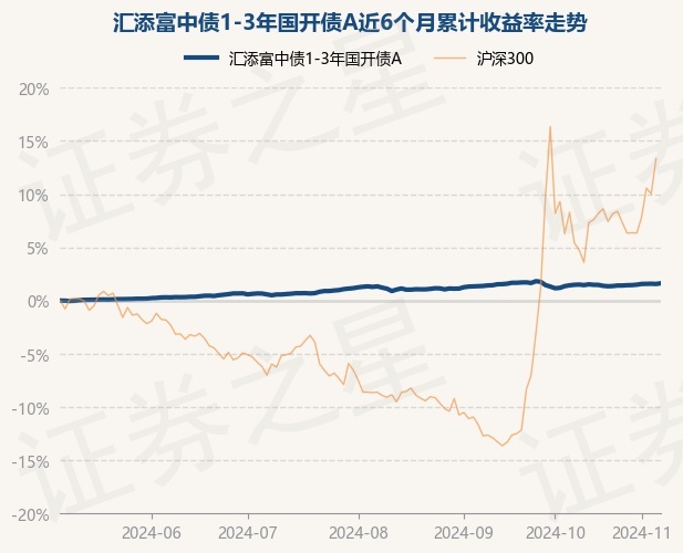 证券之星消息,11月7日,汇添富中债1-3年国开债A最新单位净值为1.0249元,累计净值为1.1791元,较前一交易日上涨0.06%。历史数据显示该基金近1个月上涨0.3%,近3个月上涨0.28%,近6个月上涨1.62%,近1年上涨3.88%。该基金近6个月的累计收益率走势如下图: