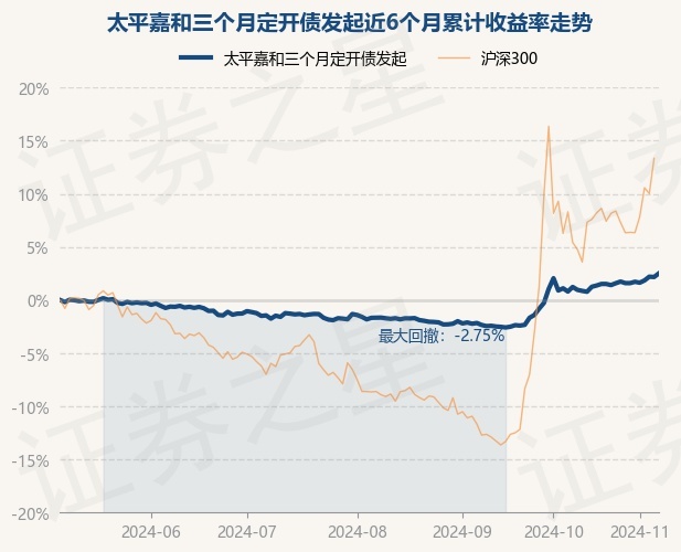 证券之星消息,11月7日,太平嘉和三个月定开债发起最新单位净值为1.0492元,累计净值为1.0492元,较前一交易日上涨0.33%。历史数据显示该基金近1个月上涨1.45%,近3个月上涨4.24%,近6个月上涨2.51%,近1年上涨4.71%。该基金近6个月的累计收益率走势如下图: