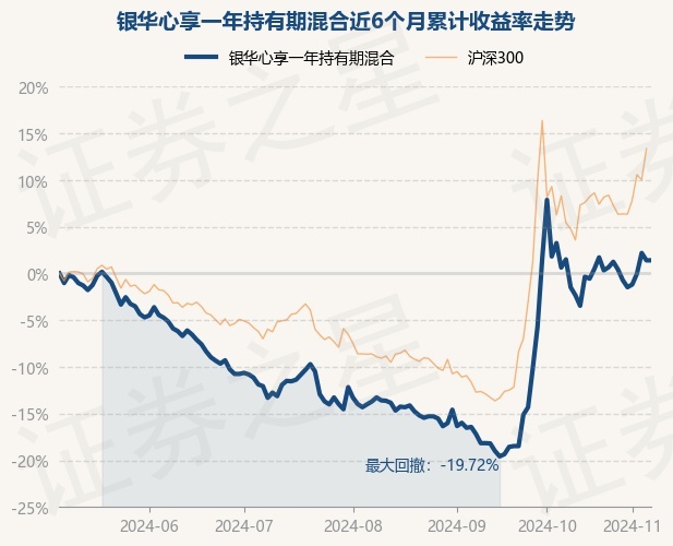 证券之星消息,11月7日,银华心享一年持有期混合最新单位净值为0.7294元,累计净值为0.7294元,较前一交易日上涨0.0%。历史数据显示该基金近1个月上涨2.67%,近3个月上涨20.9%,近6个月上涨4.33%,近1年下跌1.7%。该基金近6个月的累计收益率走势如下图: