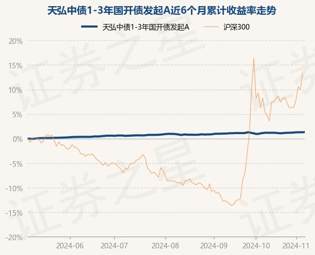 证券之星消息,11月7日,天弘中债1-3年国开债发起A最新单位净值为1.0135元,累计净值为1.1216元,较前一交易日上涨0.05%。历史数据显示该基金近1个月上涨0.26%,近3个月上涨0.37%,近6个月上涨1.34%,近1年上涨3.81%。该基金近6个月的累计收益率走势如下图:
