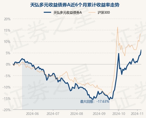 证券之星消息,11月7日,天弘多元收益债券A最新单位净值为1.1766元,累计净值为1.1766元,较前一交易日上涨2.03%。历史数据显示该基金近1个月上涨6.53%,近3个月上涨18.14%,近6个月上涨6.19%,近1年上涨4.85%。该基金近6个月的累计收益率走势如下图: