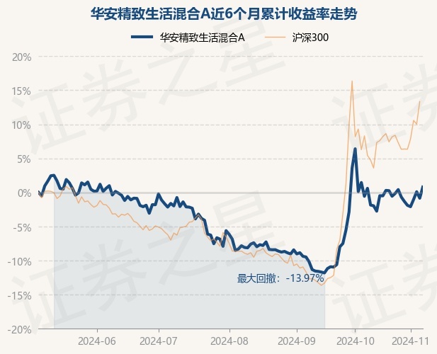 证券之星消息,11月7日,华安精致生活混合A最新单位净值为1.2894元,累计净值为1.2894元,较前一交易日上涨1.66%。历史数据显示该基金近1个月下跌2.69%,近3个月上涨9.35%,近6个月上涨0.79%,近1年上涨12.23%。该基金近6个月的累计收益率走势如下图: