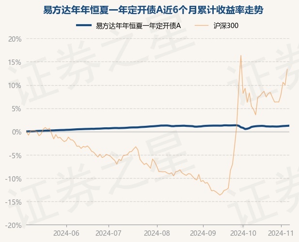证券之星消息,11月7日,易方达年年恒夏一年定开债A最新单位净值为1.0099元,累计净值为1.2078元,较前一交易日上涨0.03%。历史数据显示该基金近1个月上涨0.34%,近3个月下跌0.04%,近6个月上涨1.26%,近1年上涨4.07%。该基金近6个月的累计收益率走势如下图: