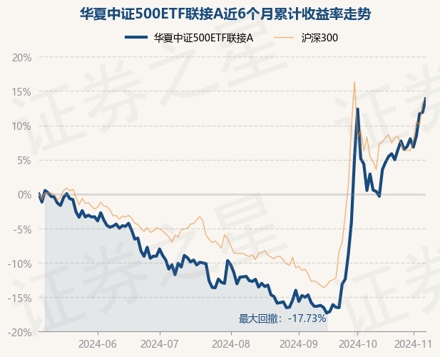证券之星消息,11月7日,华夏中证500ETF联接A最新单位净值为0.7409元,累计净值为0.7409元,较前一交易日上涨1.76%。历史数据显示该基金近1个月上涨8.07%,近3个月上涨29.46%,近6个月上涨13.86%,近1年上涨12.1%。该基金近6个月的累计收益率走势如下图: