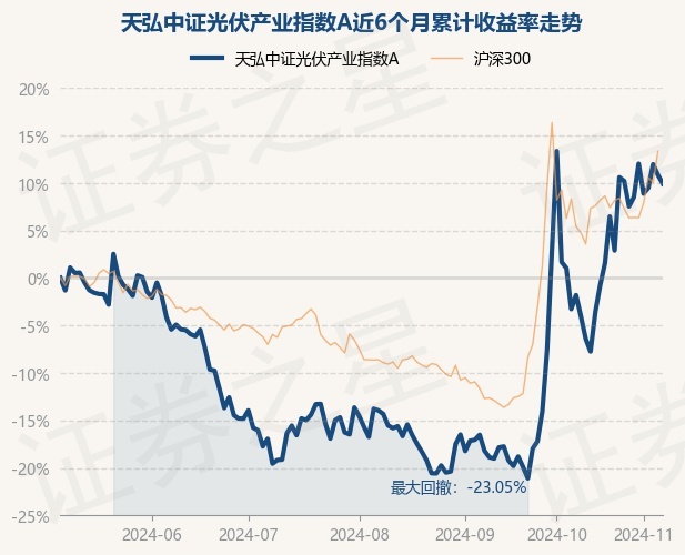 证券之星消息,11月7日,天弘中证光伏产业指数A最新单位净值为0.7532元,累计净值为0.7532元,较前一交易日下跌0.83%。历史数据显示该基金近1个月上涨6.78%,近3个月上涨27.75%,近6个月上涨9.92%,近1年下跌4.38%。该基金近6个月的累计收益率走势如下图: