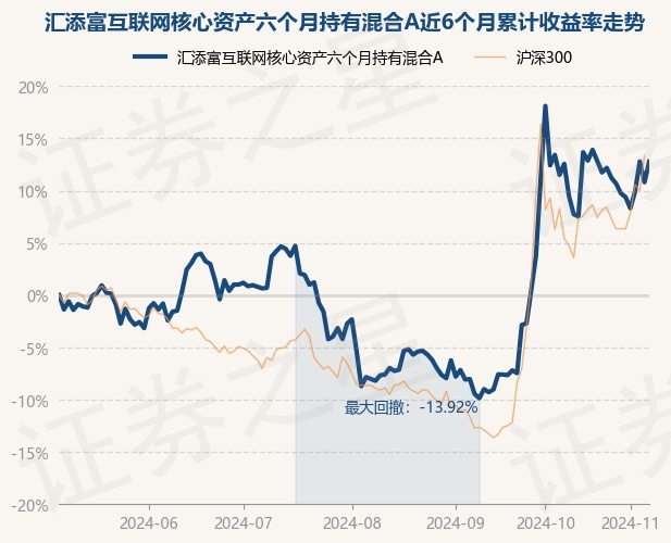 证券之星消息,11月7日,汇添富互联网核心资产六个月持有混合A最新单位净值为0.6473元,累计净值为0.6473元,较前一交易日上涨1.78%。历史数据显示该基金近1个月上涨1.55%,近3个月上涨22.59%,近6个月上涨12.77%,近1年上涨13.3%。该基金近6个月的累计收益率走势如下图: