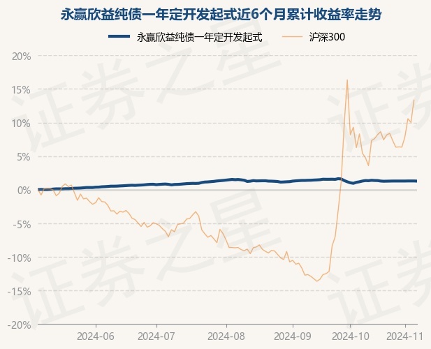证券之星消息,11月7日,永赢欣益纯债一年定开发起式最新单位净值为1.0155元,累计净值为1.1545元,较前一交易日下跌0.02%。历史数据显示该基金近1个月上涨0.1%,近3个月下跌0.24%,近6个月上涨1.28%,近1年上涨4.15%。该基金近6个月的累计收益率走势如下图: