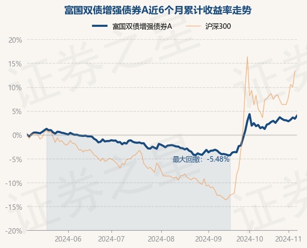 证券之星消息,11月7日,富国双债增强债券A最新单位净值为1.0756元,累计净值为1.1536元,较前一交易日上涨0.61%。历史数据显示该基金近1个月上涨1.06%,近3个月上涨6.35%,近6个月上涨4.0%,近1年上涨3.94%。该基金近6个月的累计收益率走势如下图: