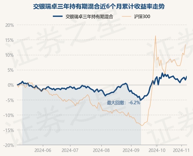 证券之星消息,11月7日,交银瑞卓三年持有期混合最新单位净值为0.9075元,累计净值为0.9075元,较前一交易日上涨1.07%。历史数据显示该基金近1个月上涨0.72%,近3个月上涨6.1%,近6个月上涨2.72%,近1年上涨6.54%。该基金近6个月的累计收益率走势如下图: