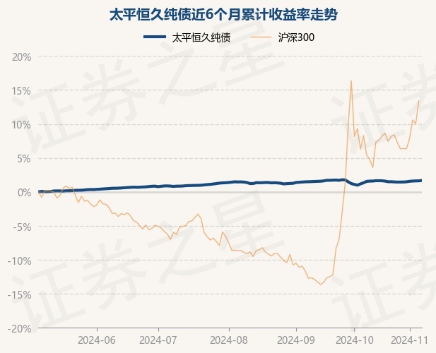 证券之星消息,11月7日,太平恒久纯债最新单位净值为1.0251元,累计净值为1.4121元,较前一交易日上涨0.05%。历史数据显示该基金近1个月上涨0.45%,近3个月上涨0.2%,近6个月上涨1.67%,近1年上涨5.54%。该基金近6个月的累计收益率走势如下图: