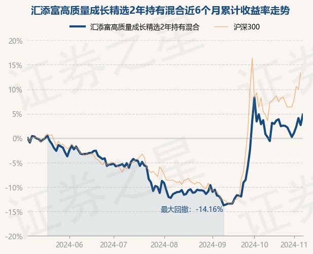证券之星消息,11月7日,汇添富高质量成长精选2年持有混合最新单位净值为0.4761元,累计净值为0.4761元,较前一交易日上涨2.12%。历史数据显示该基金近1个月上涨1.34%,近3个月上涨18.4%,近6个月上涨4.82%,近1年上涨2.85%。该基金近6个月的累计收益率走势如下图: