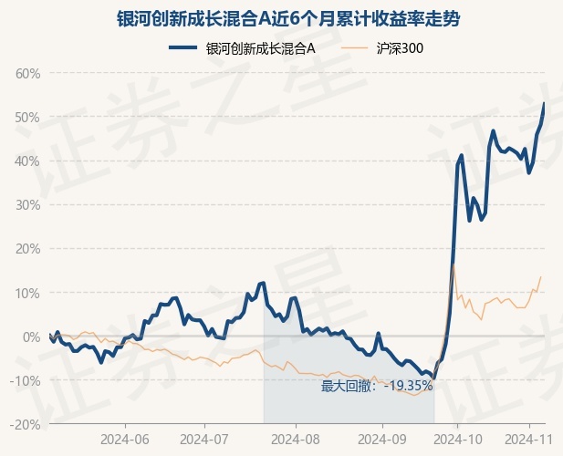 证券之星消息,11月7日,银河创新成长混合A最新单位净值为6.124元,累计净值为6.124元,较前一交易日上涨3.16%。历史数据显示该基金近1个月上涨26.81%,近3个月上涨52.44%,近6个月上涨52.78%,近1年上涨27.84%。该基金近6个月的累计收益率走势如下图: