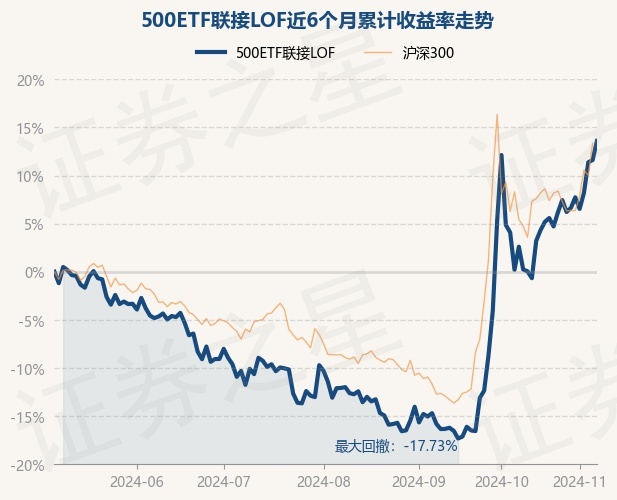 证券之星消息,11月7日,500ETF联接LOF最新单位净值为1.7393元,累计净值为1.8393元,较前一交易日上涨1.77%。历史数据显示该基金近1个月上涨7.87%,近3个月上涨29.18%,近6个月上涨13.59%,近1年上涨11.88%。该基金近6个月的累计收益率走势如下图: