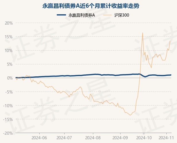 证券之星消息,11月7日,永赢昌利债券A最新单位净值为1.1166元,累计净值为1.1836元,较前一交易日上涨0.06%。历史数据显示该基金近1个月上涨0.31%,近3个月下跌0.21%,近6个月上涨1.02%,近1年上涨3.7%。该基金近6个月的累计收益率走势如下图: