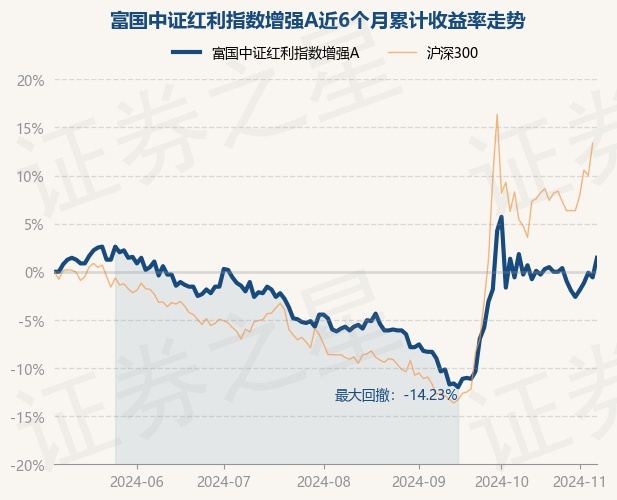 证券之星消息,11月7日,富国中证红利指数增强A最新单位净值为1.049元,累计净值为3.22元,较前一交易日上涨2.04%。历史数据显示该基金近1个月下跌2.69%,近3个月上涨7.81%,近6个月上涨1.45%,近1年上涨12.0%。该基金近6个月的累计收益率走势如下图: