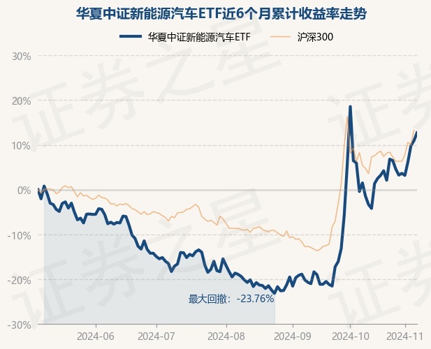 证券之星消息,11月7日,华夏中证新能源汽车ETF最新单位净值为1.301元,累计净值为1.301元,较前一交易日上涨1.59%。历史数据显示该基金近1个月上涨6.61%,近3个月上涨39.0%,近6个月上涨12.72%,近1年上涨0.7%。该基金近6个月的累计收益率走势如下图: