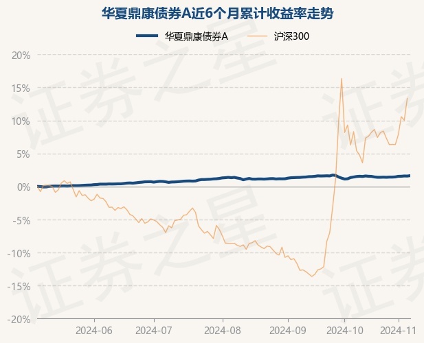 证券之星消息,11月7日,华夏鼎康债券A最新单位净值为1.0321元,累计净值为1.1745元,较前一交易日上涨0.06%。历史数据显示该基金近1个月上涨0.37%,近3个月上涨0.25%,近6个月上涨1.63%,近1年上涨4.2%。该基金近6个月的累计收益率走势如下图: