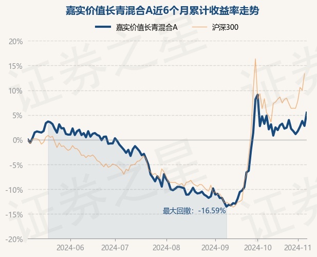 证券之星消息,11月7日,嘉实价值长青混合A最新单位净值为0.8957元,累计净值为0.8957元,较前一交易日上涨2.6%。历史数据显示该基金近1个月下跌2.48%,近3个月上涨17.07%,近6个月上涨5.46%,近1年上涨15.75%。该基金近6个月的累计收益率走势如下图: