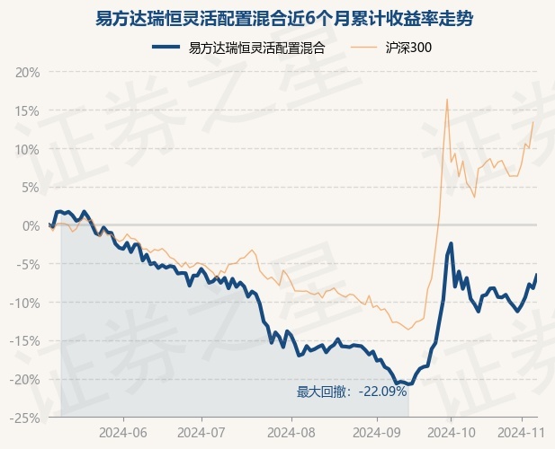 证券之星消息,11月7日,易方达瑞恒灵活配置混合最新单位净值为2.4768元,累计净值为2.4768元,较前一交易日上涨1.82%。历史数据显示该基金近1个月下跌2.7%,近3个月上涨10.92%,近6个月下跌6.57%,近1年上涨5.4%。该基金近6个月的累计收益率走势如下图: