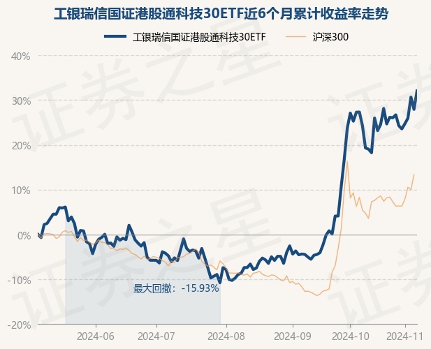证券之星消息,11月7日,工银瑞信国证港股通科技30ETF最新单位净值为1.0637元,累计净值为1.0637元,较前一交易日上涨3.22%。历史数据显示该基金近1个月上涨6.71%,近3个月上涨45.0%,近6个月上涨32.05%,近1年上涨21.39%。该基金近6个月的累计收益率走势如下图:
