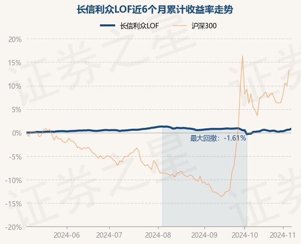 证券之星消息,11月7日,长信利众LOF最新单位净值为0.9667元,累计净值为1.3057元,较前一交易日上涨0.18%。历史数据显示该基金近1个月上涨0.3%,近3个月下跌0.49%,近6个月上涨0.8%,近1年上涨2.97%。该基金近6个月的累计收益率走势如下图: