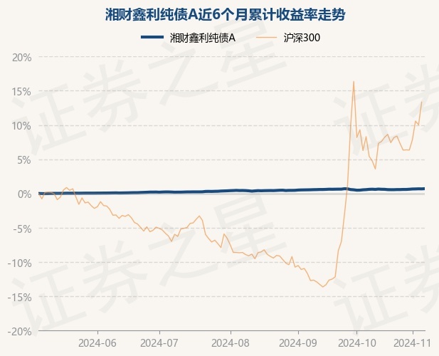 证券之星消息,11月7日,湘财鑫利纯债A最新单位净值为1.1228元,累计净值为1.4646元,较前一交易日上涨0.03%。历史数据显示该基金近1个月上涨0.16%,近3个月上涨0.26%,近6个月上涨0.7%,近1年上涨1.29%。该基金近6个月的累计收益率走势如下图: