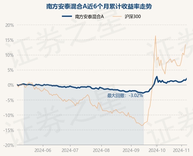 证券之星消息,11月7日,南方安泰混合A最新单位净值为1.1602元,累计净值为1.496元,较前一交易日上涨0.56%。历史数据显示该基金近1个月上涨0.22%,近3个月上涨3.49%,近6个月上涨2.06%,近1年上涨6.26%。该基金近6个月的累计收益率走势如下图: