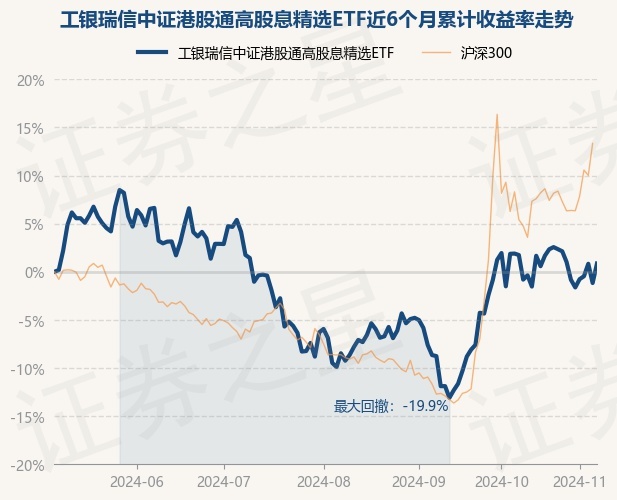 证券之星消息,11月7日,工银瑞信中证港股通高股息精选ETF最新单位净值为1.1293元,累计净值为1.1396元,较前一交易日上涨2.05%。历史数据显示该基金近1个月下跌0.38%,近3个月上涨10.19%,近6个月上涨0.86%,近1年上涨19.95%。该基金近6个月的累计收益率走势如下图: