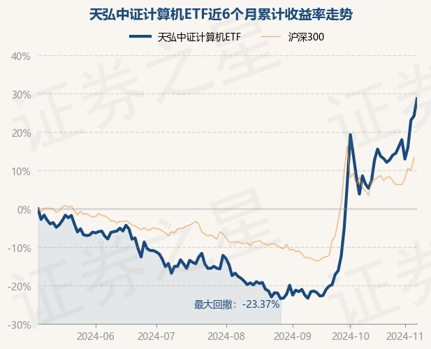 证券之星消息,11月7日,天弘中证计算机ETF最新单位净值为0.9377元,累计净值为0.9377元,较前一交易日上涨3.62%。历史数据显示该基金近1个月上涨20.6%,近3个月上涨56.18%,近6个月上涨28.7%,近1年上涨12.3%。该基金近6个月的累计收益率走势如下图: