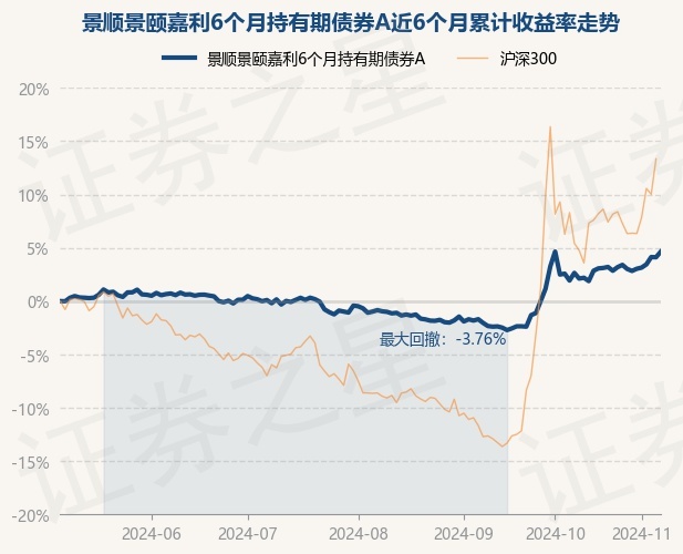 证券之星消息,11月7日,景顺景颐嘉利6个月持有期债券A最新单位净值为1.2412元,累计净值为1.2412元,较前一交易日上涨0.51%。历史数据显示该基金近1个月上涨1.34%,近3个月上涨5.54%,近6个月上涨4.65%,近1年上涨8.24%。该基金近6个月的累计收益率走势如下图:
