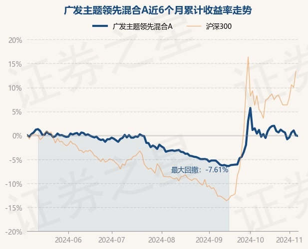 证券之星消息,11月7日,广发主题领先混合A最新单位净值为1.8496元,累计净值为1.8496元,较前一交易日下跌0.12%。历史数据显示该基金近1个月下跌3.06%,近3个月上涨3.15%,近6个月下跌0.13%,近1年上涨8.23%。该基金近6个月的累计收益率走势如下图: