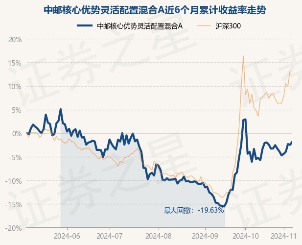 证券之星消息,11月7日,中邮核心优势灵活配置混合A最新单位净值为2.546元,累计净值为3.44元,较前一交易日上涨0.63%。历史数据显示该基金近1个月下跌4.5%,近3个月上涨8.53%,近6个月下跌1.85%,近1年上涨15.31%。该基金近6个月的累计收益率走势如下图: